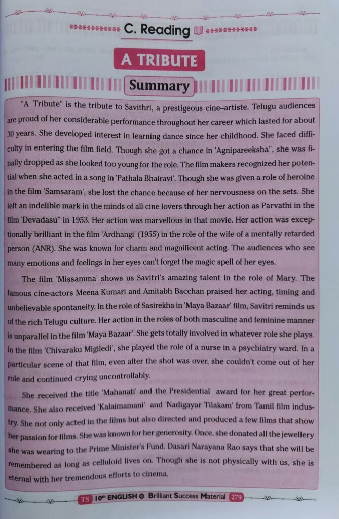 Q2]Savitri’s qualities and her acting have been mentioned in the tribute. Which of