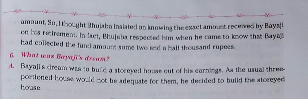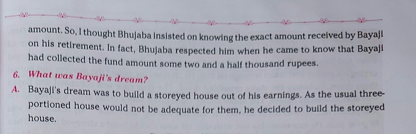 A]Bayaji’s dream was to build a storeyed house out of his earnings. As the usual three-